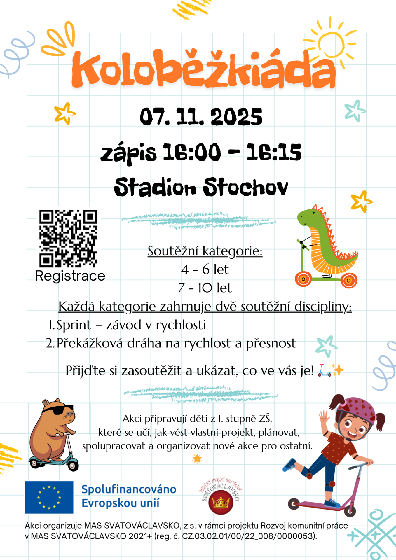 18. 10. 2024 se konal první ročník Koloběžkiády. Zúčastnilo se 27 dětí ve třech kategorií. Akce je podpořena z Malých grantů, města Stochova. Akci pořádají kroužky Kamarádi a Výpečky, kde se děti učí projektové dovednosti a organizují tak nové akce.