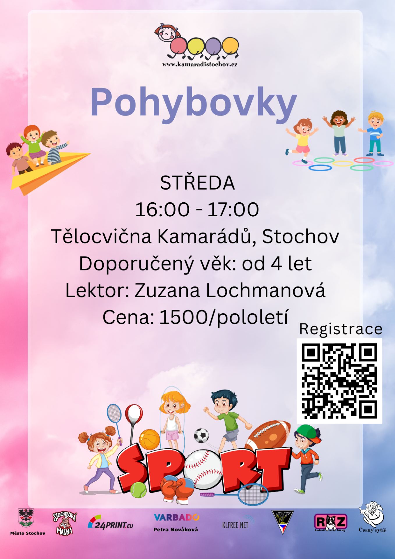 Každá lekce je malým dobrodružstvím plným her, objevování a zábavy. Přijďte s námi rozhýbat tělo i mysl – pohyb je přece radost! 😊